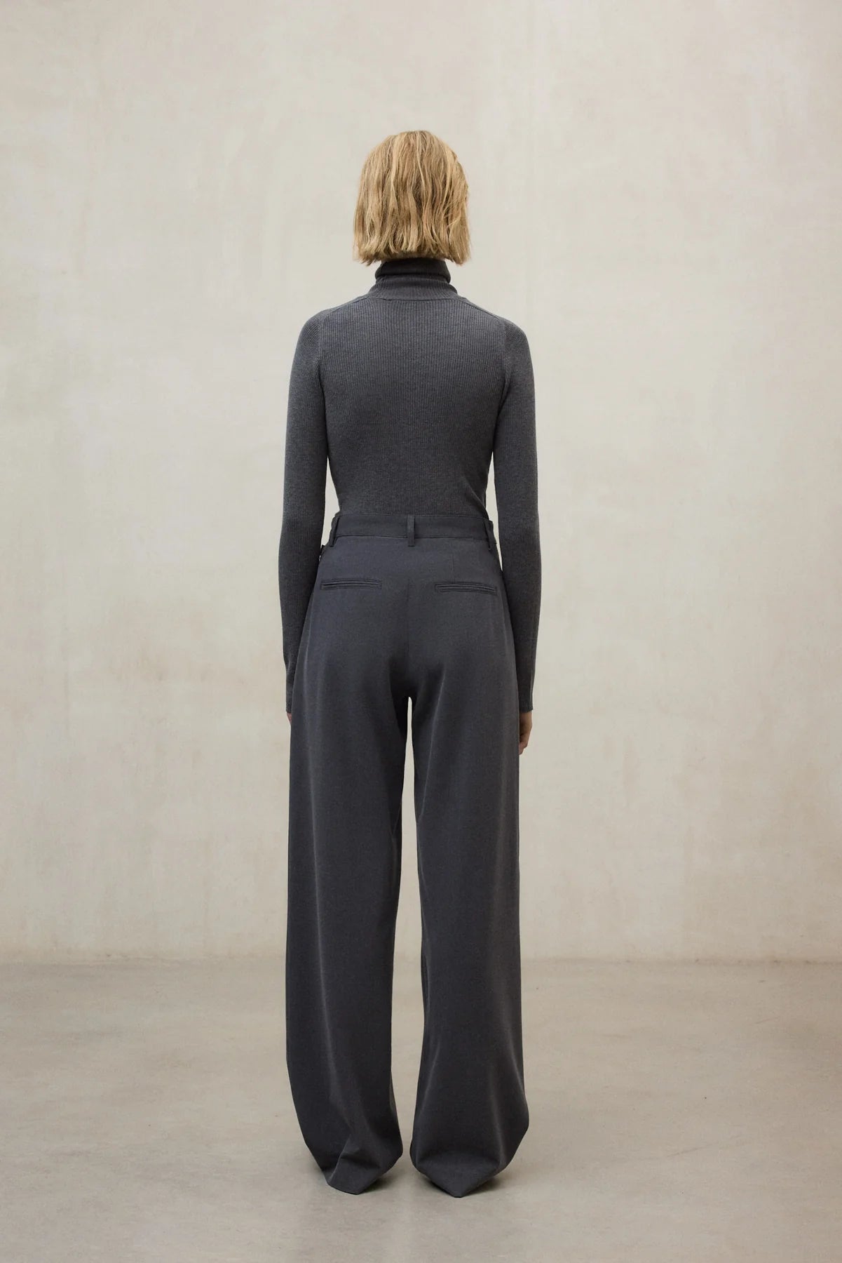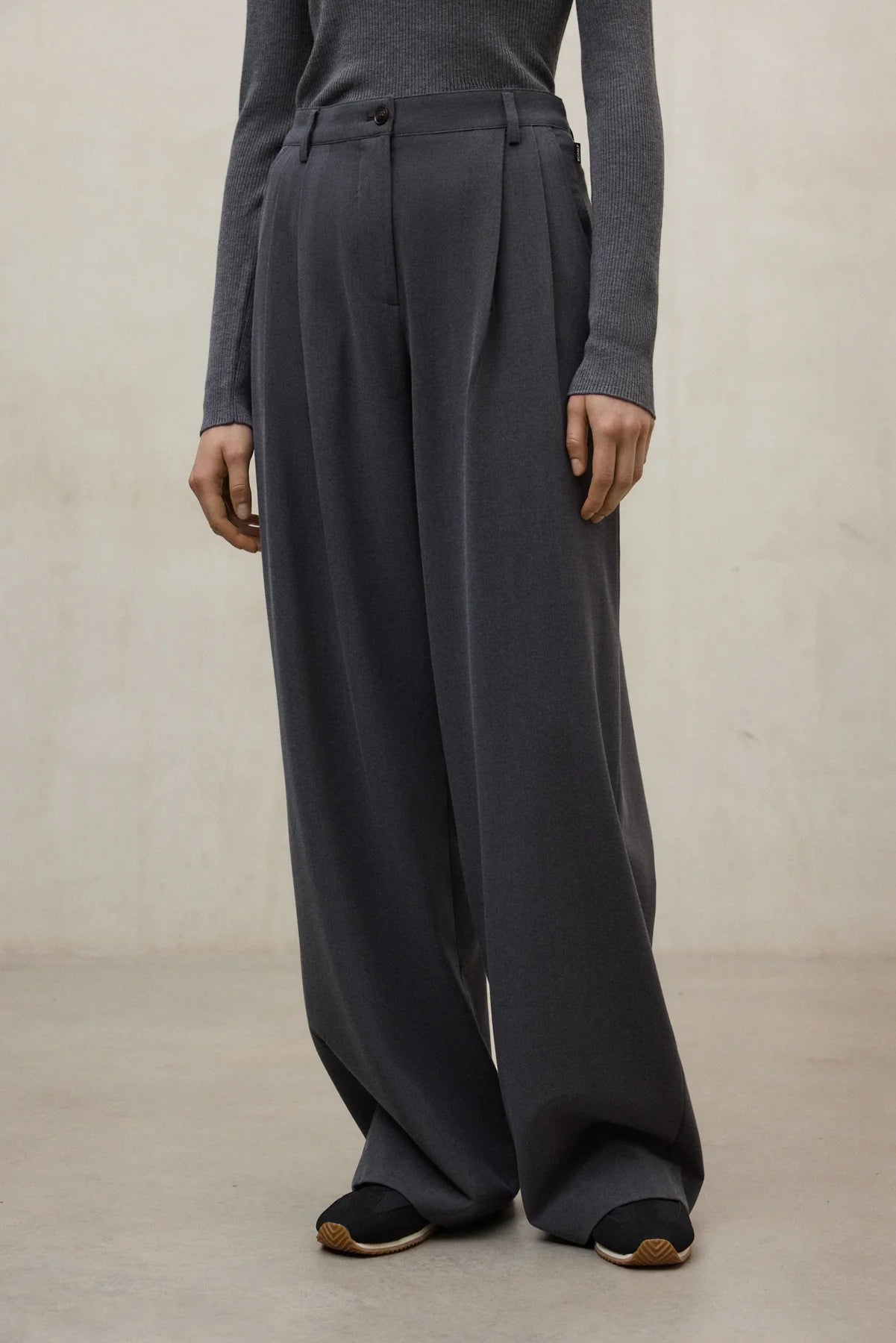 Mit Bundfalten vorne, Gürtelschlaufen, Verschluss mit Zip und Knopf