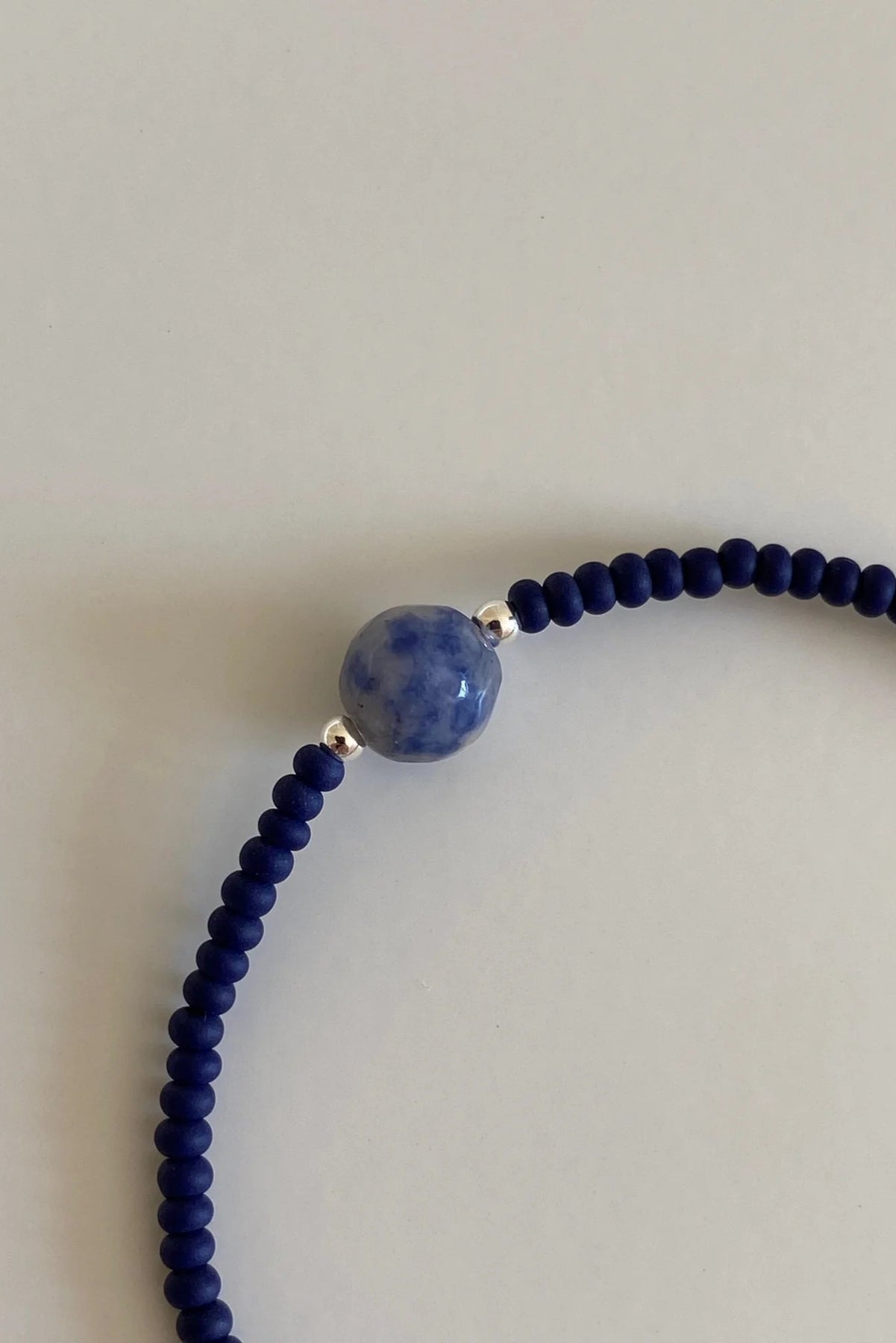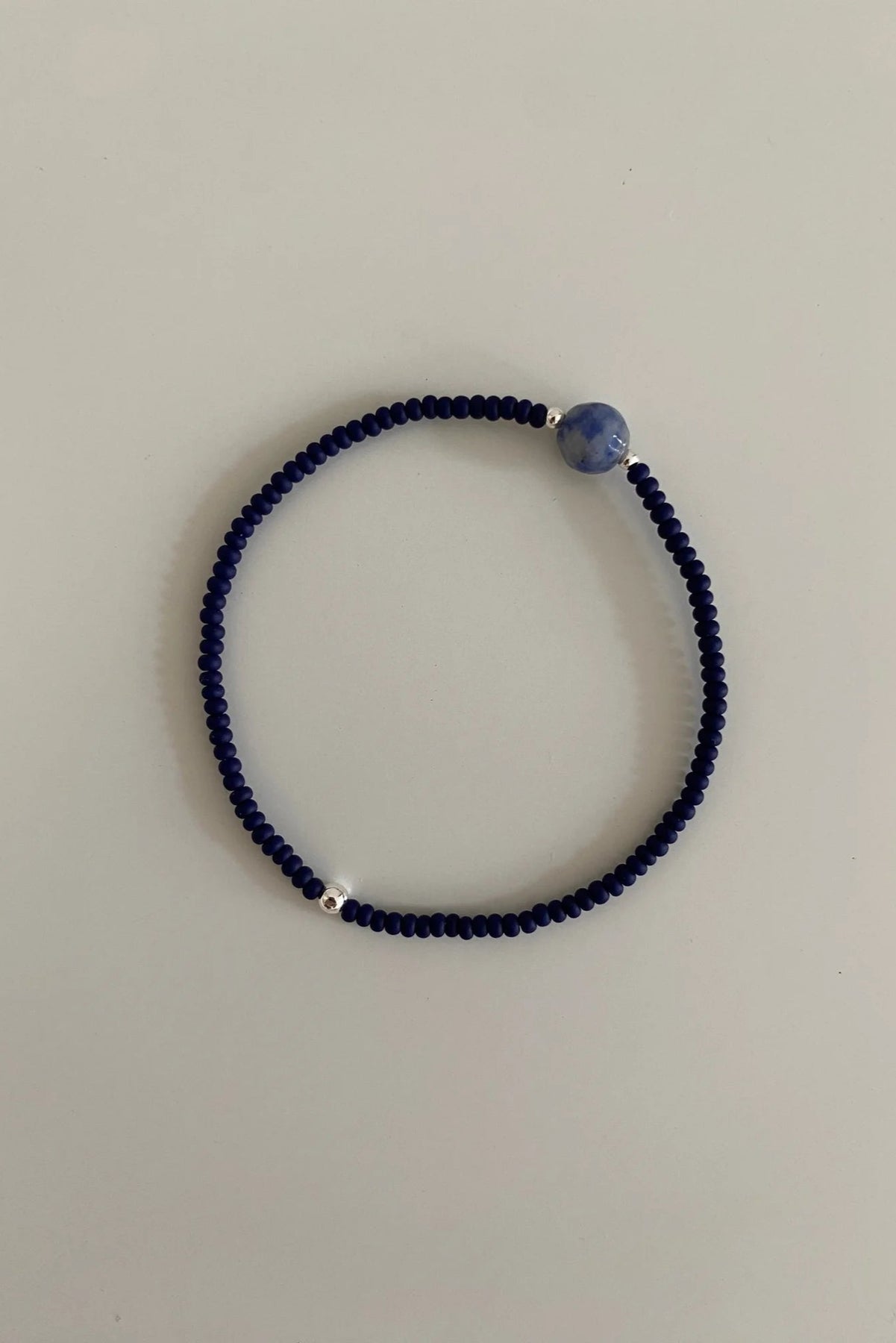 Handgefertigtes dunkelblaues Perlenarmband mit Highlight