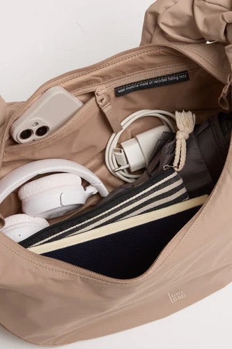 RE:NYNET® Hauptmaterial aus recyceltem Nylon aus Fischernetzen, Innenmaterial aus recyceltem Nylon, Reißverschlüsse aus PA, Polsterung aus recyceltem Polyester