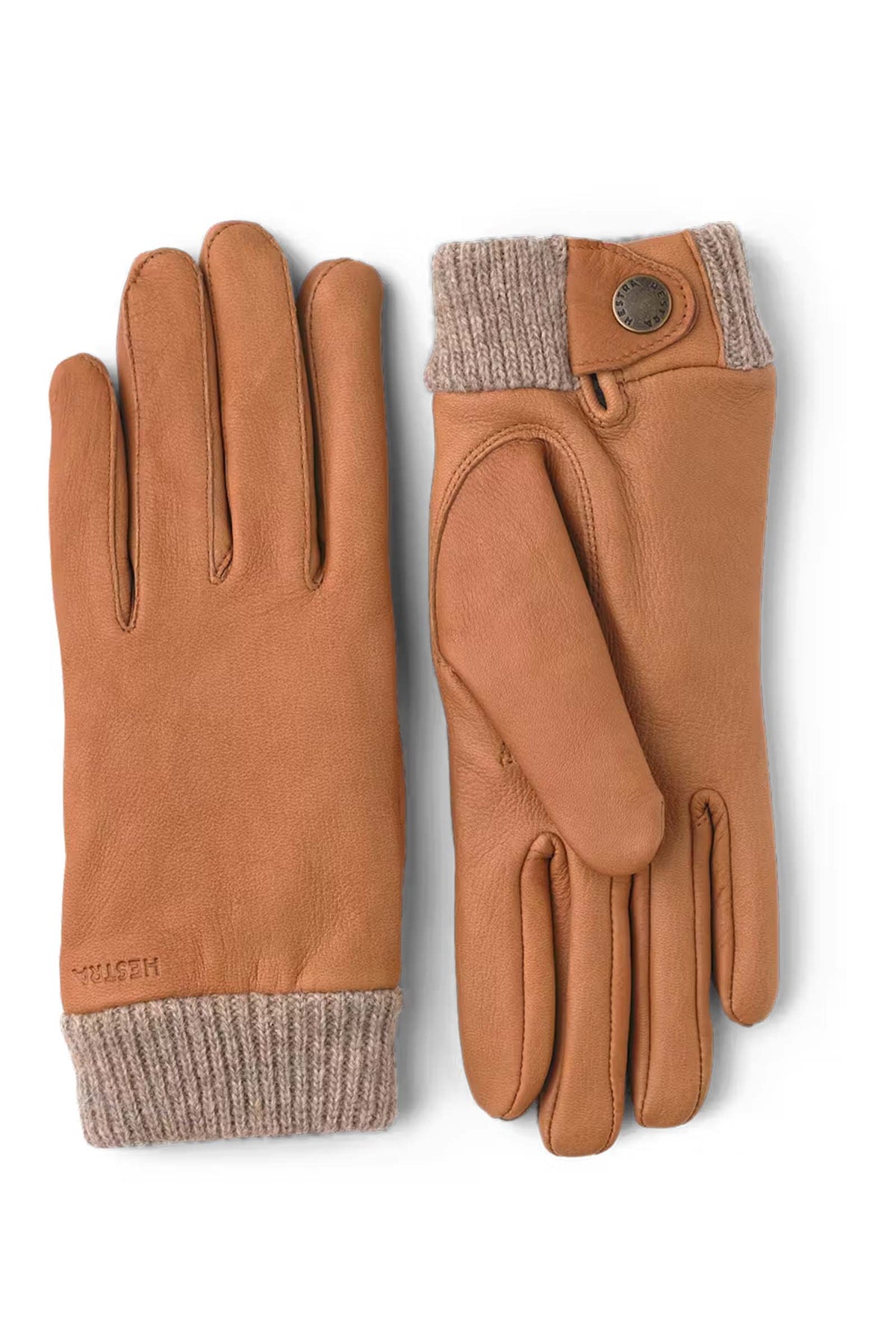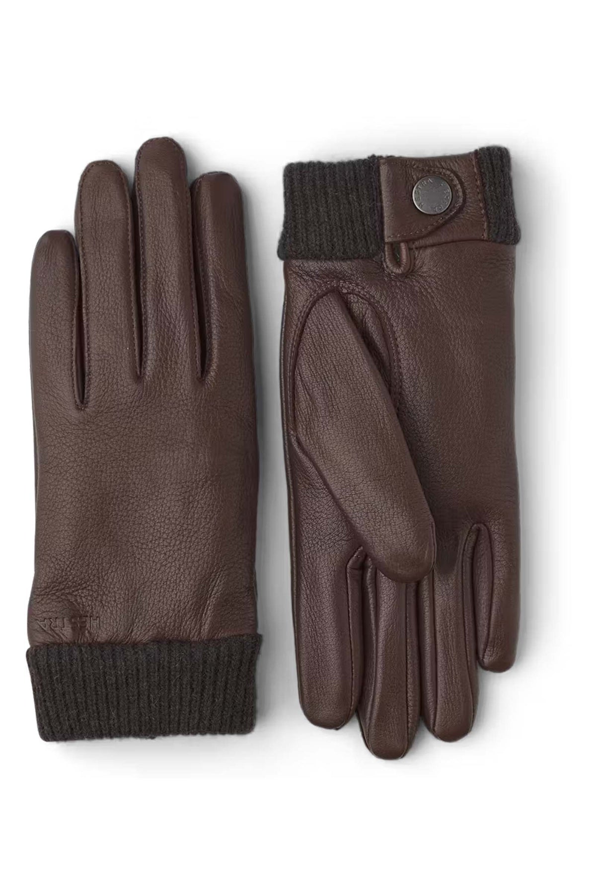 Eleganter Hirschlederhandschuh mit dekorativem Bündchen und gestricktem Wollfutter für kuschelige Wärme im Herbst und an milderen Wintertagen.