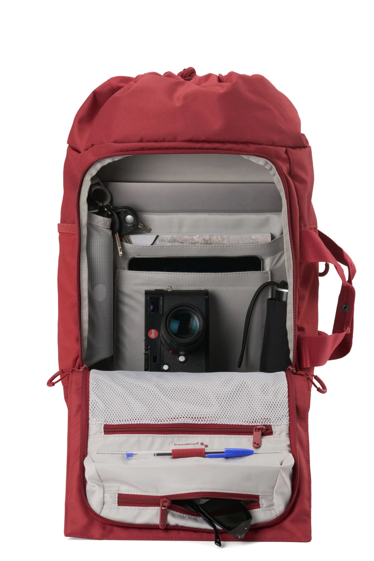 Passt sich an: Tragbar als Rucksack, Carry-On und Messenger-Bag. Träger lassen sich verstauen.