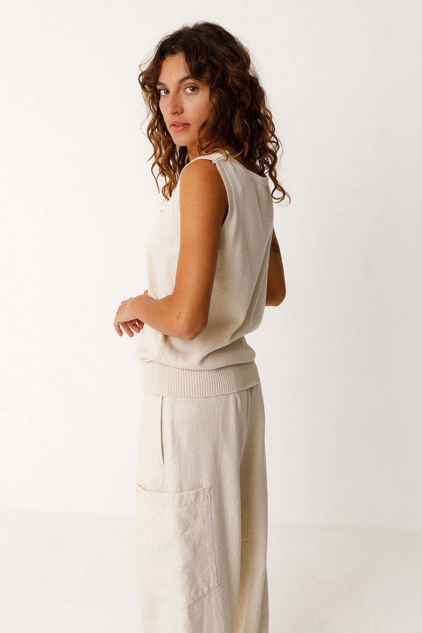 Mittlerweile sind 90% aller Stoffe von SKFK natürlichen Ursprungs, bio oder recycelt. Zumeist wird GOTS-zertifizierte Bio-Baumwolle, Hanf, Leinen oder Tencel™ aus der Produktion von Lenzing verwendet.
