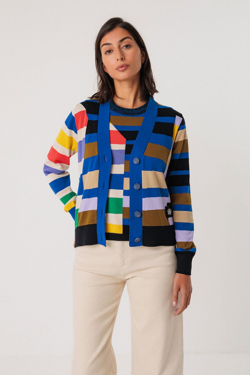 Ärmelloses Strickoberteil mit farblich geblockten Streifen